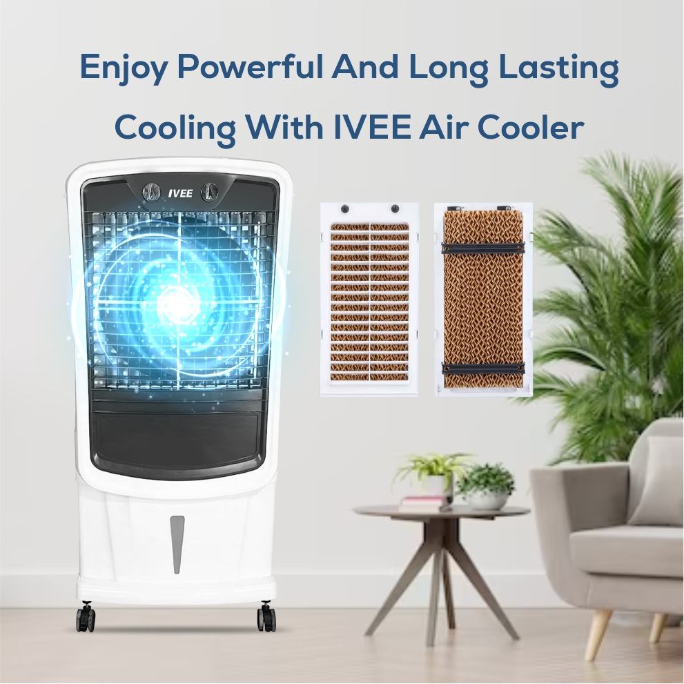 - High-Efficiency Cooling Pads: Unleash superior cooling with our air cooler’s high-efficiency cooling pads. Experience a rapid drop in temperature as these pads work seamlessly to provide consistent and refreshing cooler air.